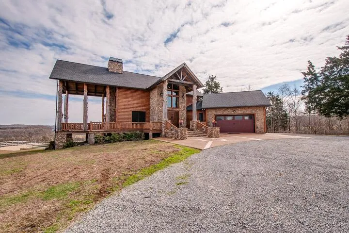 Custom Log Home overlooking the Duck River Valley. Offering 5 over-sized bedrooms, Chef's kitchen, HUGE indoor outdoor fireplace, 1'' Poplar hardwood flooring, and full daylight basement open to pool area. 825 Square foot Guesthouse/studio and 2 barns. This is a must see property and will not last!