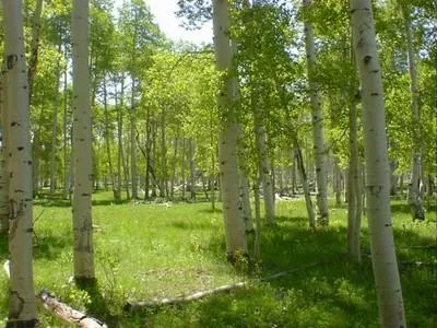This parcel is wooded with tall aspen trees and dotted with beautiful pine trees.