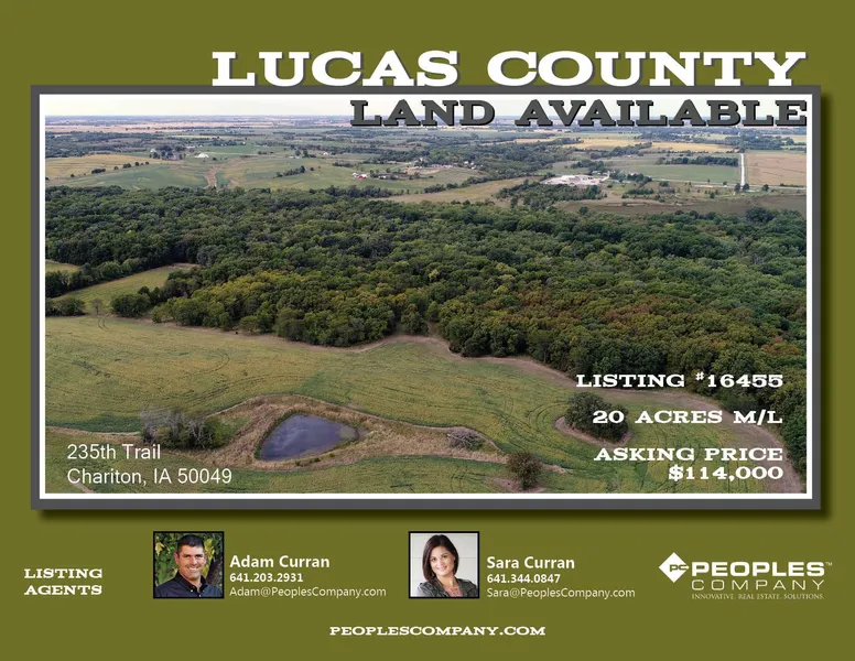 We are pleased to present 20 acres m/l that would serve as a premier building site nested in mature trees overlooking the Pin Oak Marsh reserve. This property offers privacy and plenty of recreational opportunities combined with spectacular views of mature hardwoods. Utilities are available at the road with Rathbun Rural Water and Alliant Energy. This 20 acres m/l building site is located 2 miles south of Chariton off of 235th Trl or locally known as Bluegrass Road.