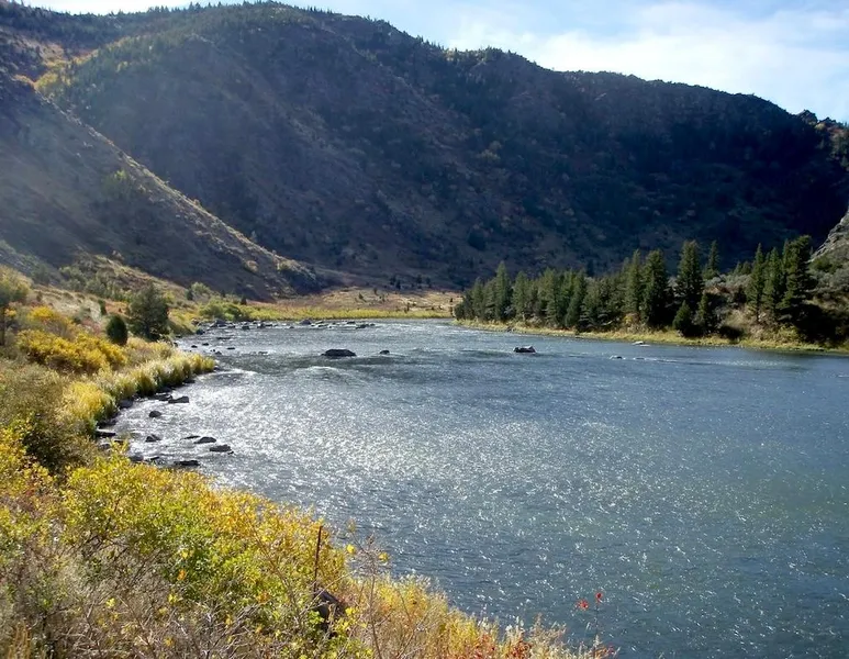 Flowing through a lush ranching valley girded by snowcapped peaks, the "Fifty Mile Riffle" of the Madison River deserves its reputation as the best trout stream in Montana. Ironically, rapids, and not fishing holes, bookend the Madison in Southwest Montana. In the south, the river roars and tumbles for three miles once it shoots out of Quake Lake, offering a fun ride for experienced floaters and a good challenge for wade fisherman.