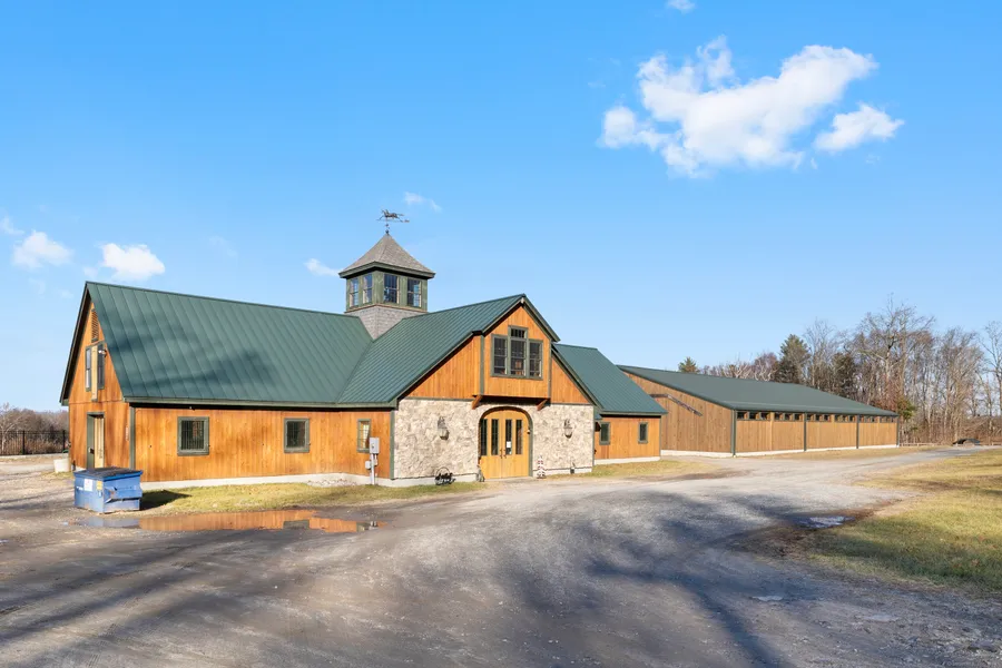 Presenting a truly unparalleled equestrian estate, this meticulously designed property spans 16 acres and offers a comprehensive range of amenities tailored for both horse and rider. Located in a serene and scenic area with direct access to riding trails that lead to the Salmon River and Priam Vineyards, this estate is an ideal retreat for equestrian enthusiasts and professionals alike. At the heart of this estate stands a stunning 5,100 sq ft post-and-beam barn, meticulously crafted to provide the utmost comfort and safety for your horses. The barn includes 12 custom-built 12x12 matted stalls, each featuring unique stall fronts, security cameras, hay drops, and fans to ensure optimal comfort. Every detail has been thoughtfully designed to enhance both functionality and style. The property also boasts a climate-controlled office and lounge, featuring a kitchenette and full bathroom, providing a comfortable space to relax or manage the farm's operations. Additionally, each rider or horse is accommodated with dedicated tack lockers, ensuring gear is organized and secure. Enjoy a spacious 70x120 indoor arena perfect for year-round training, offering a safe, controlled environment regardless of weather conditions. Two Outdoor Arenas, a 65x65 arena with lights for evening riding and a 65x120 arena, offering expansive space for training or events. 11 Well-Maintained Paddocks with wood fencing and convenient water access, these paddocks ensure that your horses are well cared