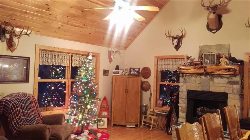 Beautifully rustic cedar and brick home sitting off the road on 20 acres with breathtaking views from the wrap-around porch. The propane fireplace, douglas fir ceilings, and the kitchen's cedar top bar compliments the house's surroundings perfectly.