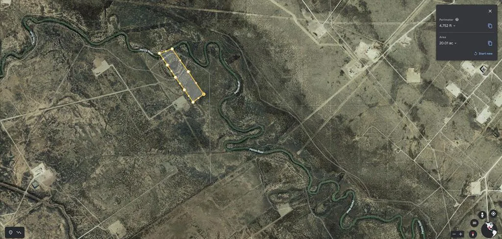 20 acres of undeveloped land just 15 miles north of Pecos. The property has 490 feet of river frontage and is great for recreational use.