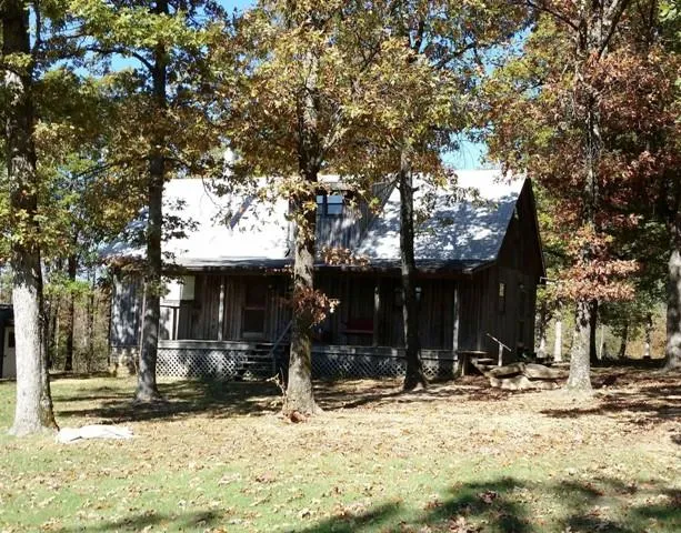 No. 01384 CABIN AND 20 ACRES for sale in the Ozark Mountains near Mountain View, Arkansas, with plenty of privacy. The home is 3 bedrooms and 2 baths with large front and back porches to enjoy spring through fall. The interior of the home is a mix of pine, native cedar with some drywall allowing the owners to decorate in any style. Central heat and air services the home. A cast iron wood burning stove adds additional warmth and ambiance on those cold winter days. Outbuildings include an open bay shop with partial enclosure, a barn, and a metal storage building around the outdoor furnace. The yard has various flowerbeds that provide color almost all spring and summer. There is room for a horse or two on the 4 acres of partially fenced pasture with 2 ponds and plenty of gravel roads to ride. A large garden area could provide all the vegetables you could want. Find your place in the mountains just a short distance from Mountain View. $149,900