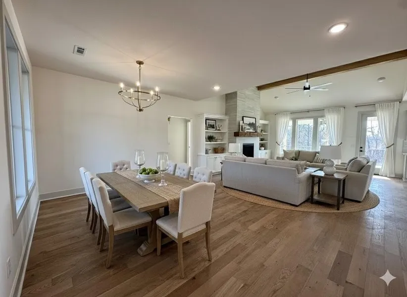 Welcome home! Discover the refined charm of modern farmhouse living in this newly constructed residence, thoughtfully crafted by a distinguished local builder. Designed with open-concept concept that seamlessly blends rustic warmth with chic, contemporary finishes. The heart of the home- large kitchen featuring a pantry, a waterfall prep island with quartz countertops & a gas range. Kitchen sink overlooks the backyard and has a dedicated side bank of buffet cabinets for extra storage. The living room, centered around a fireplace with mantle, is lit up by elegant champagne gold lighting. Living room transitions to a 10x16 covered back deck, complete with a gas hookup—perfect for entertaining. The primary retreat offers a spa-inspired ensuite with a soaker tub, a fully tiled walk-in shower and a generous walk-in closet. Upstairs, discover a versatile 13x15 bonus landing, a dedicated home office, two guest bedrooms & full bath. Located minutes from Bella Vista’s world-class mountain bike trails, golf, and lakes.