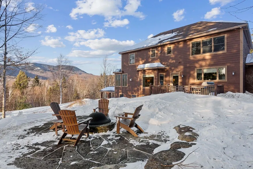 This exquisite home sits behind the hole 7 Green on the Sunday River Country Club, in the heart of the westerly side of Sunday River Resort. Owners enjoy Mahoosuc Range views, access to the golf course and a three minute ride to Jordan Bowl's Boots On/Boots Off trail for skiing. This home is decked with all of the amenities, a finished basement area includes wet bar with kegerator, game areas and a walk-out to a palatial hot tub under a gazebo. Out toward the green the well-landscaped yard features a patio with fire pit and deck for fresco dining. Above the attached, two-bay, heated garage is a lovely in-law apartment that sleeps four and has its own laundry and yet has direct access to the house for mingling with the homeowners. The generously sized primary suite with stunning tile detail features a soaking tub, dual vanities and walk-in closets, water closet and oversized walk-in shower. A whole house auto generator assures uninterrupted enjoyment. This wonderful home is more than 4800 square feet and is turnkey.