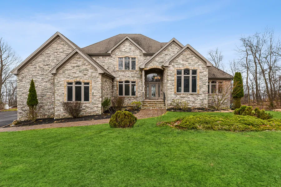 Soaring describes this house, this property, and this lifestyle all just a quick drive on Route 80. Enter through the front door to view the breathtaking view with vistas sweeping the mountain range. This house has a first floor master bedroom with private bathroom, (oversized shower and whirlpool tub), walk-in closets, sunrise and sunset views, large eat-in kitchen, soaring ceilings, views, (did I mention views?), family room open to the kitchen, work-from-home space, formal dining room that can seat more than 12 people, custom built mahogany library/office, front and rear staircases, two en-suite bedrooms, 4 car garage, (with direct access to the basement), 14 course basement with walk out, daylight windows and rough plumbed for a full bathroom. The living room steps down from the foyer, hardwood floors, pellet stove and ceiling to floor windows which allow access to the rear deck. The kitchen and family room create an open floor plan that open onto the rear deck which is great for entertaining with views along the rear of the property. Three other generous bedrooms are on the second floor, one is en-suite and the other two bedrooms share a full bathroom with separate vanities for privacy. This house, this property and this lifestyle rarely come to market. There is also .8 acres of property that is included in the adjacent Town of Hope.