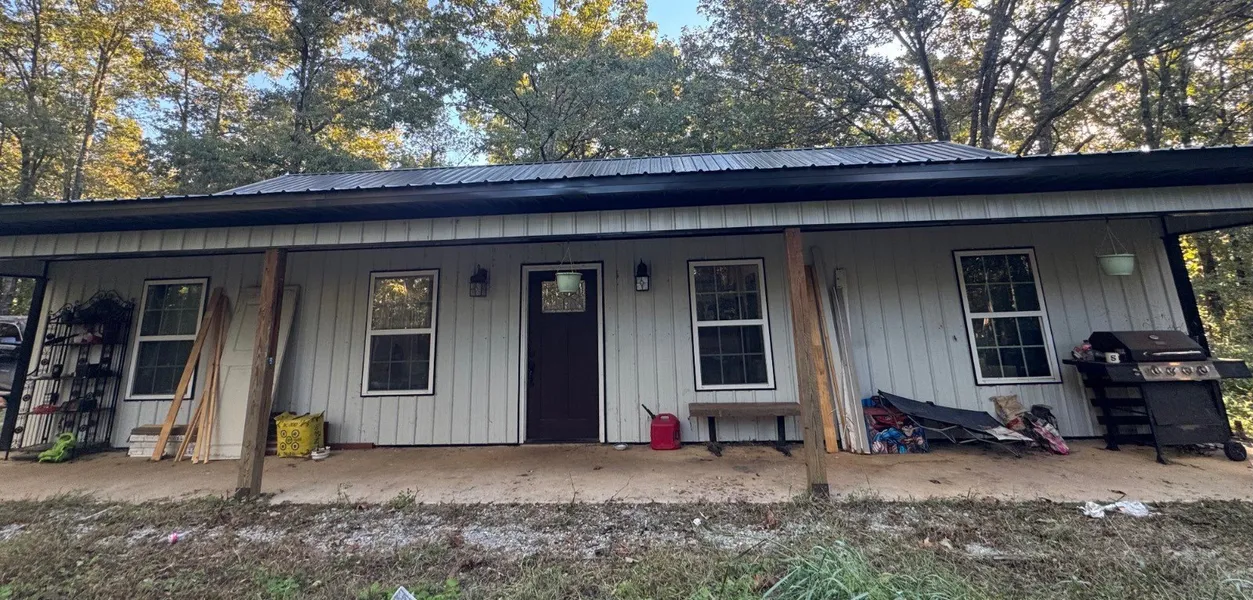 NEW PRICE! Take a look at this beautiful home on 10 acres M/L! Tucked away in a private setting, you'll find this newer 3 bedroom, 2 bath metal home featuring 1,536 sq ft with a split floor plan. Kitchen, living room and dining room are open, maximizing the square footage. (Master bathroom needs some finish work but is plumbed and ready for custom touches). Home built in 2022, CH/A, slab foundation, vaulted ceiling, rural water, septic, 12x20 outbuilding. (Washer, Dryer and Refrigerator negotiable)