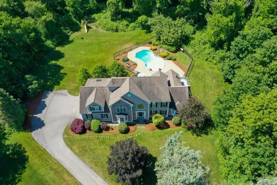 SPECTACULAR SETTING! 20 Nicole Ln is an exceptional property that combines traditional features with the love of nature. First floor flows nicely:spacious EIK with breakfast bar, tile flooring and granite counters, DR and LR with HW flooring and custom molding ,FR with stone FP, cathedral ceiling and french doors to 4 season room with floor to ceiling views of pool and deck access. bath and private home office completes 1st floor. 2 story foyer leads to 4BR's, 2FB and designated laundry room! MBR suite with cathedral ceiling, sitting area,WIC and MB with jacuzzi tub, double vanity and step in shower.Exterior green space is stunning: heated mountain lake shaped pool with beautiful hardscaping and decking ,mature plantings and open level green space abutting conservation.3 car garage, walk up attic and unfinished basement perfect storage or future finished space. 20 Nicole Lane a wonderful place to call home, located near major commuting routes and close proximity to downtown Groton.