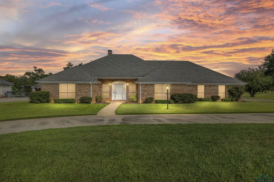 Welcome to this inviting 4-bedroom, 2.5-bath home offering 3,387 sq. ft. of living space on 1.32 acres. Located on the newly renovated Oak Forest Country Club golf course in Longview ISD, this property combines comfort, privacy, and stunning views. Highlights include a 645 sq. ft. glass-enclosed porch overlooking the course, a two-car garage plus golf cart garage, and a circle drive for easy access and extra parking. With plenty of room to add a swimming pool or shop, the possibilities are endless. The home features a roof replaced in 2017, two electric water heaters, and generous storage throughout. While some minor updates are needed, this is an incredible opportunity to create your dream home in a prime golf course community. Enjoy the peaceful setting of Oak Forest with no HOA fees, while still being just minutes from all the conveniences of Longview.