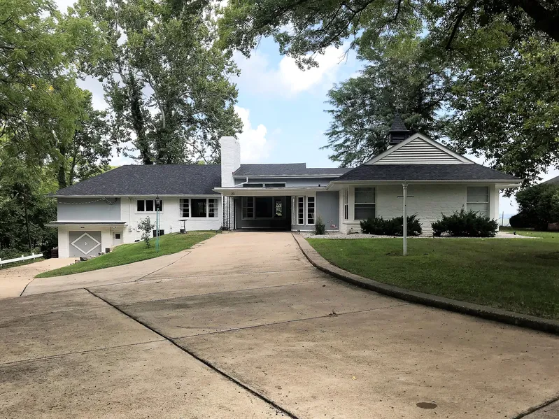 One of a Kind Mid-Century Modern on 7.4 Acres with a Mississippi River View. Open & Airy Hearth Room opens up to the Living Room. Great Views from every angle. Vintage Kitchen is a Chef's delight with original metal cabinets, quartz countertops and top of the line appliances. Separate Laundry Room. Formal Dining Room opens to the SunRoom which is great for entertaining. This charming home offers 3/4 Bedrooms. The Master Bedroom offers a Full Bath Suite and the Second Bedroom has a private Bath. The 3rd Bedroom Suite is located on the other side of the home for privacy. This room offers a Full Bath and Private Deck with a Great View. The 4th Bedroom features a Murphy's Bed along with built in Closets, Dresser and Half Bath. Perfect for Overnight Guests. Many updates have been made to this property and you must see to truly appreciate what this home has to offer. Call for your appointment today.