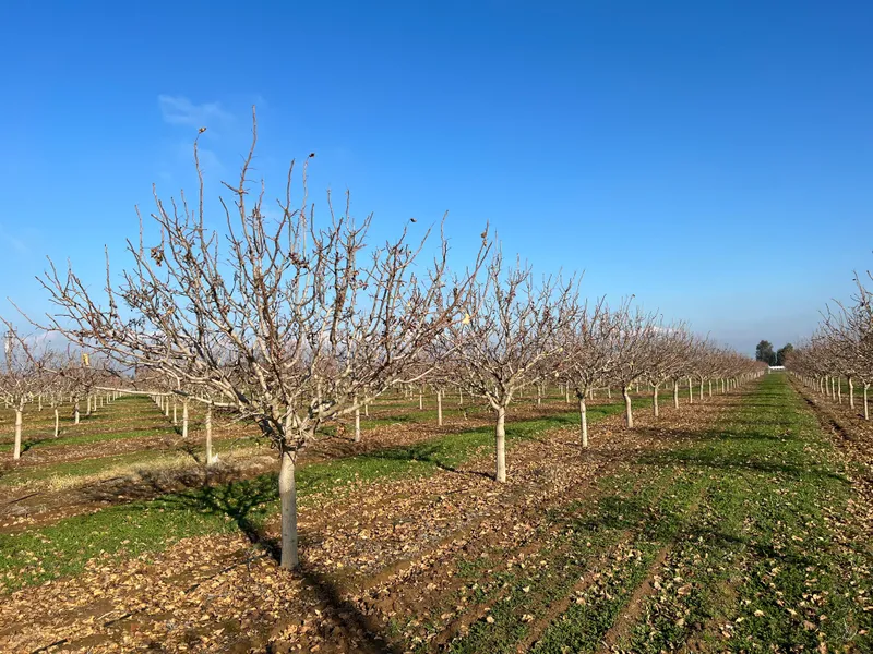These Golden Hill variety pistachios on UCB1 root-stock have been proudly farmed. The trees are in the producing age and are projected to yield around 3,500 pounds per acre. The pistachio orchard belongs in the Chowchilla Water District and has a big deep agriculture well. The trees are irrigated through a single line hose with a two one gallon dripper.