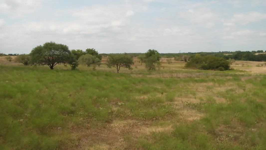 Ground Cover - The land is mostly a mixture of native grasses and scattered trees. The area around the creek has some dense tree cover.