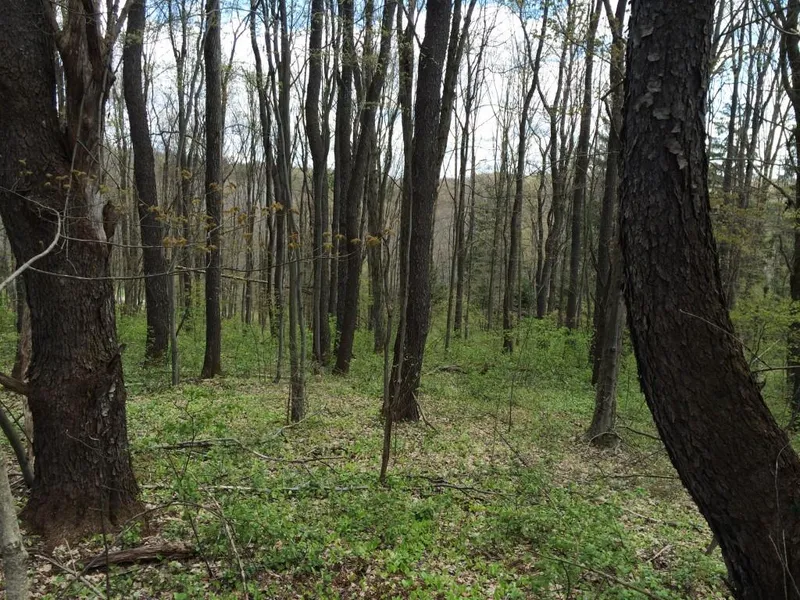 The land has a good mix of hardwood trees including mature cherry timber, pine trees and brushy area.