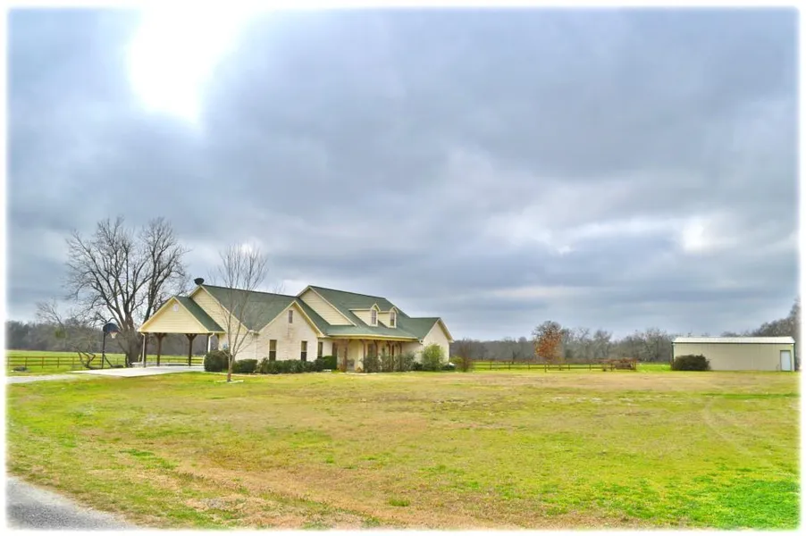Outstanding country property featuring a ranch style home with Austin Stone, lots of porches, workshop, beautiful pastures and good fencing. Home has wonderful pine wood walls, vaulted ceiling in living area, stained concrete floors, granite countertops in kitchen and high grade stainless steel appliances. This home sits on a beautiful pasture setting with a creek, scattered trees and a heavily wooded area in the back. Lots of wildlife.