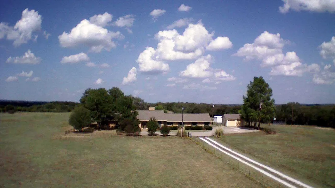 Set on a hill about half way into the property with scattered shade trees, the single-story brick home provides pretty views and a little over 3,000 square feet of interior living space. Its spacious floor-plan includes 4 bedrooms, 2.5 baths, a large family room with vaulted ceiling and wood burning fireplace, a formal living room and two dining areas. There is also an attached 2-car garage plus a detached 480-square foot 2nd garage/storage building with electric and overhead doors with openers.