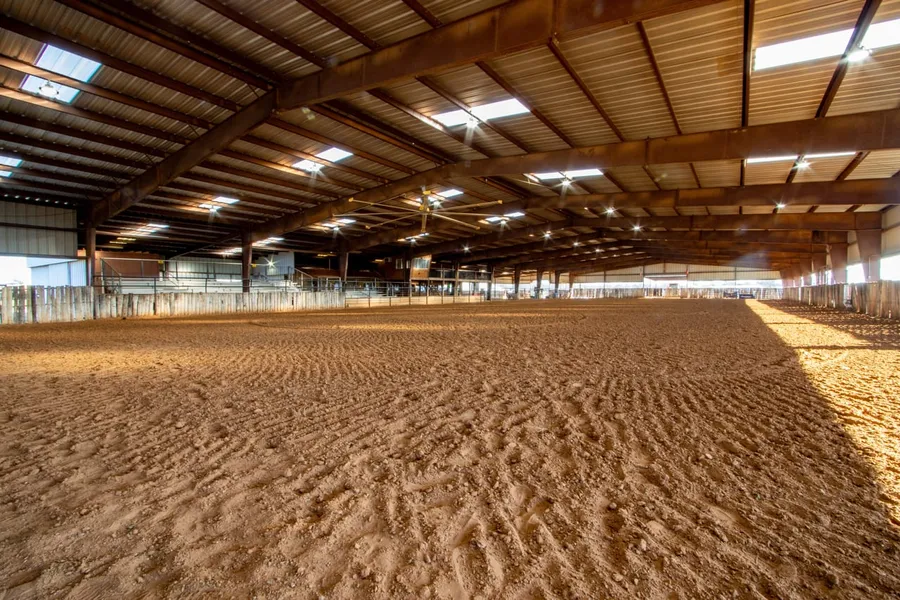One of the standout features of this property is the enormous 140x240 covered arena. This covered arena allows for year-round training and events, with seating stands for spectators and an announcer's booth for equestrian competitions or shows. Whether you're hosting a local event, conducting training sessions, or simply practicing, the arena is a perfect space for all your equestrian needs. There is also a kitchen and dining hall at the arena providing an excellent opportunity for dining or catering events. The kitchen is fully equipped with modern appliances, offering versatility for preparing meals, catering services, or even running a small business. This addition can be particularly beneficial for hosting equestrian events, parties, or providing food services to your clients and guests.