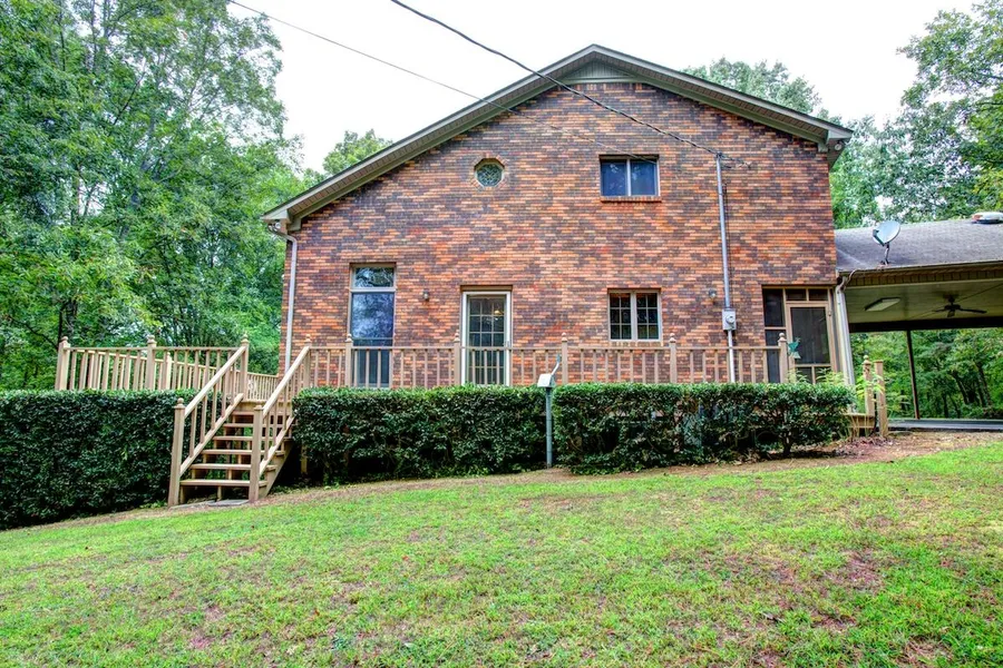 Brick French Chalet updated home sitting 0.4 mile off road. Very private, wildlife, open and woods, workshop with electricity. Home has wrap around porch, two wood burning fireplaces, tile, hardwood and carpet, balcony overlooking great room w/vaulted ceiling, recessed lighting, dining room with double doors leading out to wrap around porch updated cabinetry in kitchen, appliances remain, bedroom in basement is concrete storm room. Basement is completely finished and it would make a great mother in law suite with bedroom, 3/4 bath, laundry and Great Room with fireplace! Ardmore Schools with tuition!!