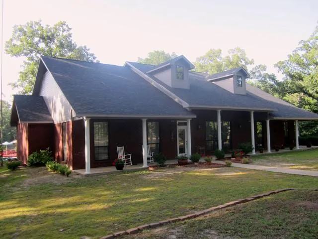 Enjoy the beautiful summer views on the patio overlooking the swimming pool and private lake! Custom built with 2 living areas. Fully equipped gourmet kitchen with large island and breakfast bar. 12 ft ceilings in living area. Perfect home for entertaining! Enjoy the concrete walk-way to the in-ground pool and deck with easy access to the wet bar and 3/4 bth. Master bedroom has French doors onto side porch and has large bath complete with oversized shower,double vanities and walk- in closets.