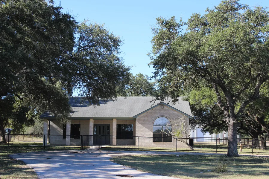 BEAUTIFUL ROLLING HILL COUNTRY PROPERTY WITH LIVE OAK TREES WITH NICE BRICK HOME & LARGE IMPRESSIVE MULTI PURPOSE METAL BUILDING ON OVER 20 ACRES ON HIGHWAY 46 WEST OF NEW BRAUNFELS, TEXAS NEAR THE FM 3009 INTERSECTION. A PAVED DRIVEWAY LEADS TO THE HOME & DETACHED GARAGE WITH LARGE OFFICE AREA, FENCED YARD AROUND HOUSE, SPRINKLER SYSTEM & PAVED AREA FOR RV HOOKUP. THE BUILDING IS APPROSIMATELY 9000 SQUARE FEET UNDER ROOF AND HAS A LARGE STORAGE AREA, 7 COMMERCIAL ROLL-UP DOORS, PROCESSING ROOM WITH WALK-IN COOLER AND ICE MAKER, FEED ROOM, LIVESTOCK SHED, HAY OR EQUIPMENT STORAGE, COVERED STALLS & PIPE PENS WITH LOADING CHUTE.