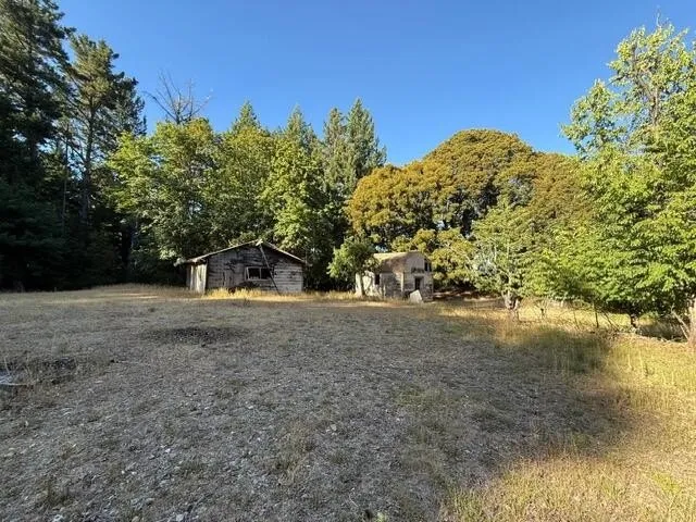 On the front half of the property there once stood a home. This gorgeous land, this land with the old orchard and the grand old trees. What a lovely spot just off the paved road, 11 minutes to downtown Honeydew and the Mattole River. The land is flat and usable and seems to be waiting for you to build your home here. The deer wait in the yard for the next family to arrive. On the back half of the property you will not only find privacy you will find gently rolling land where the hills are low and the inclines are gradual. This wooded area seems to let in the perfect amount of sun. Surprise: property comes with a zoning clearance certificate for offsite commercial cannabis processing. There are two large barns & a shop (2000 sq ft single story & 2560 sq ft 2 story, 576 sq ft). Very special