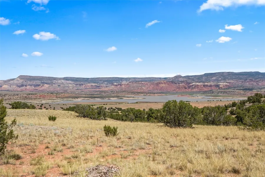 Spectacular 20.95 acre property to enjoy or build your desert retreat. Impressive views of Abiquiu Lake, Rio Chama, Cerro Pedernal, Georgia O'Keefe's famous Ghost Ranch, and the Red Cliffs. This parcel is located in a gated community with an HOA, consisting of large lots, beautiful homes, and access to a private boat ramp. This lot has electricity at the property and accessible roads. The building site is large enough to accommodate a main home and a casita or studio. Savor the feelings of both privacy and a sense of community in the Land of Enchantment. Abiquiu Lake is a quiet and peaceful lake, 5,200 acres and twelve miles long. Abiquiu is located 1 hour northwest of Santa Fe and 1.5 hours southwest of Taos. The lot is across the lake from Ghost Ranch, where many popular movies have been filmed.