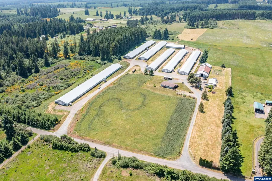 Incredible 20.97-acre income-producing poultry farm with panoramic views of Mt. Hood and surrounding foothills. The farm includes 150,750 SF of broiler barns with a CAFO permit for 200,005 broilers, multiple outbuildings, and a beautifully maintained 2014 triple-wide manufactured home. The 3-bed, 2-bath home features an office with separate entry, custom kitchen, open living space with propane fireplace, jetted tub in the primary suite, and a walk-in safe. Refer to WVMLS #830166 Enjoy a fully landscaped yard, tall ceilings, and a covered deck perfect for taking in the stunning rural scenery. Gravel drive with loop access and abundant parking complete this turnkey opportunity. Each barn is individually metered, alarmed and monitored. 3 tax lots with this property, parcel#01351183, parcel#01047860, parcel#01872049. Property being sold with additional parcel of buildable land 59.66 acres parcel #05020268.