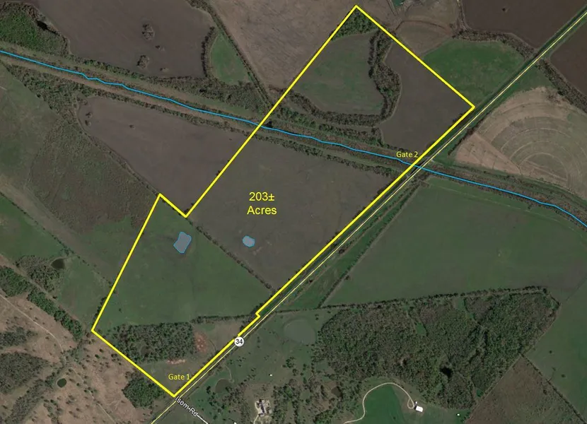 200 acres of land East of Ennis on State HWY 34, just a mile away from the Trinity River. This is agricultural and recreational land with cattle fencing, two ponds, a creek and a mile of road frontage. There are two exiting gates providing convenient access. Pastures are fenced and cross fenced with some repairs needed. Over 100 acres have been used for farming in recent years. Over 95% of this ranch is in the floodplain.