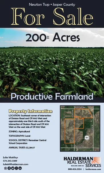 Legal Description: 100 Acres in Section 33, Township 30 North, Range 7 West, Jasper County, IN and 100 Acres in Section 34, Township 34 North, Range 7 West, Jasper Co., IN