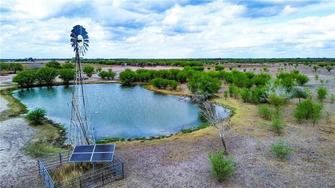 The property spans 200 acres and features an innovative solar-powered water well pump that supplies water to a large, clear tank, a cistern, a central 10ft cement trough, and smaller cattle troughs. This makes it ideal for livestock and sustainable water management in South Texas. Appropriate areas for deer feeders and blinds, located in the back right quadrant of property, provide for the hunt. *Large clear stock tank *Improved acccess throughout the property *Red 2 7/8" pipe corner and line posts mark the boundaries *5 partitioned pastures linked to 10' cement trough; ease in rotational grazing *New boundary and cross fencing *Convenient cattle working pens in place