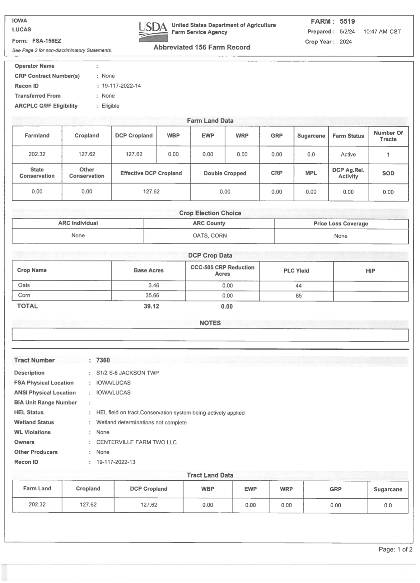 Research Parcel Information-Farm is located 2 miles north of HWY 34 or 5 miles northwest of Lucas, IA.
