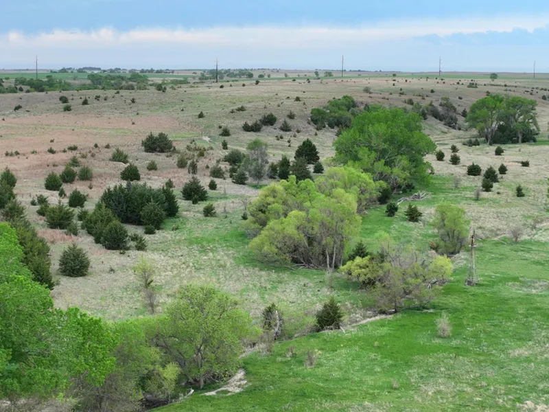This 200-acre tract in Osborne County, KS, checks many boxes for both the cattle rancher looking for additional grassland as well as the avid outdoorsman interested in a great spot near the Solomon River to hunt deer, turkeys, and upland game. Consisting completely of native grassland, this rolling pasture features good bottom grassland, rural water, a runoff pond, and a large drainage that will seasonally provide water and is lined with tall mature cottonwoods. This property provides a great amount of scenery with its rolling terrain, mature cottonwoods, and cedars, timbered draws, pond, and excellent view of the Solomon River to the south. It is located just over 1 mile west of Alton, KS, with access from HWY 24. With the Solomon River a little over 1/2 mile to the south, this property holds deer and upland game and will provide good hunting opportunities. If you are looking for a productive tract of grassland with reliable water in a great location, this is the property for you. Give the listing agents a call for more info or to schedule a visit to the property!