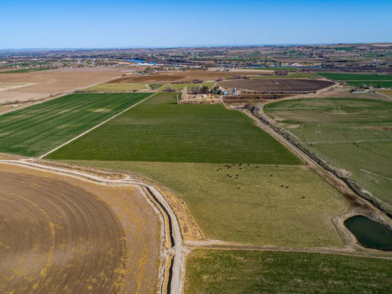 Once in a generation opportunity to own 115+/- acres of multi-use land with Jump Creek running through it and a spring fed pond! Serious developmental potential. 85+/* acres of prime irrigated crop land around feedlot zoned Ag. All irrigated ground is Water District Exhibit A ground. Feedlot has 2000 head capacity with grain and feed storage. 2-story home has old-growth pecan hardwood floors on main and upper level, fireplace, air conditioning, screened porch and large partially finished basement.