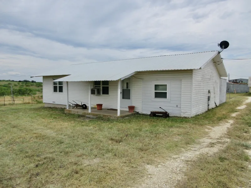 Unique opportunity to own an isolated slice of Mills County! Quaint 2/1 farmhouse sits approx 300 yds off of CR 336. This lane is owned and is NOT an easement. Home has metal roof, vinyl siding, covered back porch and new windows were recently installed. Inside there is a large living area, kitchen and dining are open concept. Kitchen has been updated with new countertops and tiled backsplash. Appliances will convey and include gas range, microwave and refrigerator. Bath is shower only. There are original hardwood floors under the carpet in both bedrooms and main part of living room. Ceiling fans throughout the home. Washer and dryer hookups located behind double doors in kitchen/dining area.