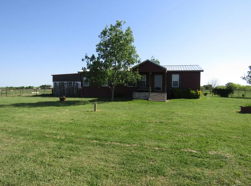 Very Clean Horse Property, with an extremely nice 3 Bedroom 2 Bath, Open Concept 2013 Doublewide with Metal roof, 20 X 60 metal awning over a large concrete back porch, fenced back yard with a separate dog run, 2- 8 x 12 storage buildings, 72 x 55 pull thru metal Barn with 4- 15 ft. wide stalls, Tack room, Water & Electric, 15 x 28 concrete slab for Hay storage, 2 separate approx.. 4-5 acres traps with freeze proof faucets to water troughs, one trap has a nice little pond, 2 separate pasture shelters for your animals, Approx. 15-acre pasture that would be great for growing your own hay. Property is fenced with Slick wire & Goat fencing except for one section on the West side has no fence behind barn.