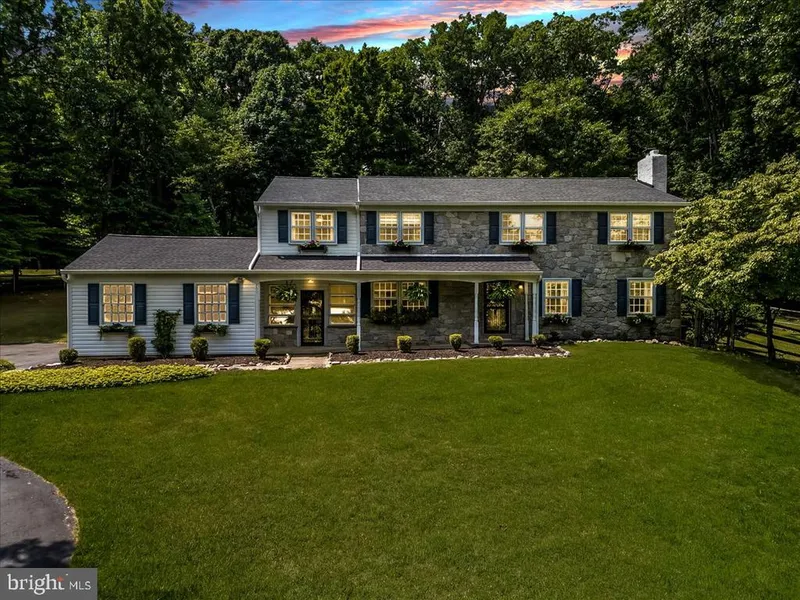 As you crest the Indian Hill of Oneida Lane to this peaceful cul-de-sac location; Your Future is apparent as the sun beams upon the natural stone of this mid century 5 bed 2.5 bath stately colonial home nestled into a mature cleared acre of Indian Hills in Malvern, West Chester Schools. As you enter the curved driveway to your destiny, the newer roof, side entry 2 car garage, the colorful fresh flowers in the window boxes, and rustic decorative period exterior doors grab your attention while appreciating the privacy of this serine location on the hillside. This amazing property benefits from the 34 acres of wooded open space behind it as part of the adjacent Rossmore community, featuring walking trails within, ample wildlife, and beautiful ferns galore throughout. The primary access point from the garage or main front door leads you to a durable transitional mud room. A quaint interior window gives you a quick preview into the home's main floor office space which boasts beamed ceilings, tastefully toned built-in bookshelves, and the featured original hardwoods. Stepping into the home's main floor from the transitional space, it's here that your vision of your new life at 200 Oneida begins. You value the expansive traditional but opened main floor plan with laundry amenity and half bath offset to the left. To the right we step up into an eat-in kitchen with cherry wood floors, table nook, granite tops, tile backsplash, refreshed solid wood cabinets, gas range featuring a modern stainless hood exhaust, and a custom owner made stone breakfast bar. The wall was opened into the more formal dining room to provide a more gracious hosting area. The dining area boasts those original hardwood floors, crown moldings and is continuous into the traditional living which features stone wood burning fireplace, crown moldings, and ample natural light mid morning. The original entrance off the living room from the front covered patio still hosts the period flag stone which has a nostalgia to it. The rear of the home has a featured family room addition. This cozy space features tile flooring, a gas fireplace with brick wall surround, ample windows for great natural light, access points to the left side patio area or sliders to the right where a sizable rear deck overlooks the natural lands at the crest of your rear yard. A pleasing 550 sq ft finished basement has been recently added as a wonderful recreational area for games, playtime, or even a nice theater room. Light tones, vinyl flooring, access to mechanicals and a substantial storage area complete these lower floor amenities. A natural wood staircase leads upon a lengthy second floor, boasting original hardwoods throughout, a whole house attic fan, and even a large hall closet outside the fully renovated hall bathroom. The primary suite is segmented on the private far left of the home and is accented with decorative crown moldings, large walk-in closet with closet system, dual vanity, period tile, and cornered tub shower. Another small bedroom rest close off the main suite which is perfect for nursery needs or off-primary suite office space. The remaining 3 bedrooms are situated on the far side of the second floor, are all substantial in size, have great closet space, a few front windows on this side have these deep window sills and provide great natural light. While you are seemingly in a remote compound at the fun neighborly cul-de-sac of Oneida Lane where yes, a pickle ball court exists, valuable extra parking is abundant, and even a fire pit brings together friends and family on weekly occasions; your life amenities and conveniences are all within 5 minutes. Malvern and West Chester Boroughs, the R5 Paoli Rail Line, and even just a short walk to East Goshen Park. ***New Air Conditioning System Installed 7/3/2024***