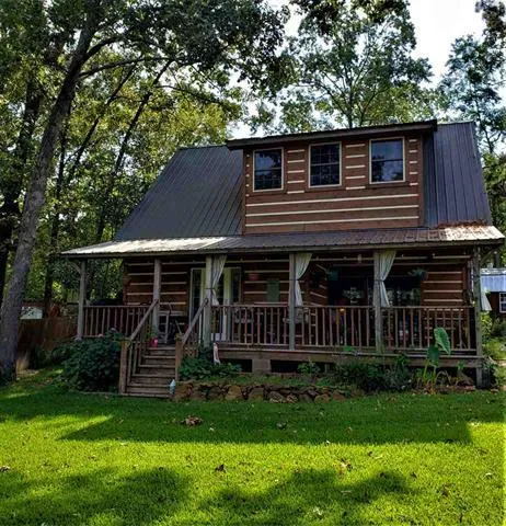 Cozy, rustic, charming waterfront property at Lake O Pines. This property gives you all the country feels as soon as you driveup. Beautiful Satterwhite logging on the outside with large covered deck that you could sit all day in your rocking chairsenjoying the beauty of the lake and grazing of the deer. Inside you will find 100 year old refurbished cedar on the walls thatgives this property a warm cabin feeling. Sit in the living room gazing out the large windows that look directly to the lake or curlup on cold winter nights next to the wood burning stove. Master bedroom is on bottom level and has its own door out to theporch with another great view of the lake. Upstairs are 2 additional bedroom areas with great views and plenty of space. Thishome would be great for whatever your needs, weekend home or permanent.