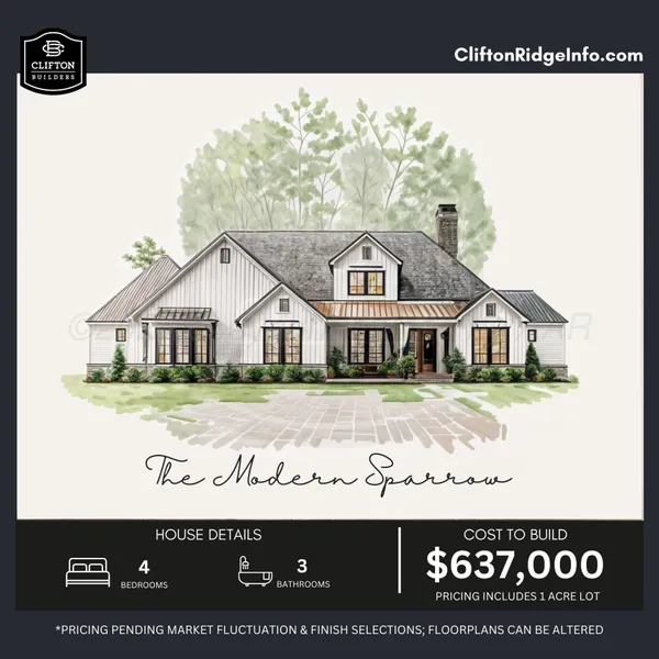 Build with Clifton Builders! Family Living with room to entertain. Here we have the ''The Modern Sparrow.'' Call for details on this specific floor plan or interest in others. The newest development with scenic views near Canyon Country Club that you won't find anywhere else! Development includes: underground utilities, cluster mailboxes, and blacktop roads maintained by the county... all of this WITHOUT an HOA membership! Final sales price will be based on builders cost see and clients selections