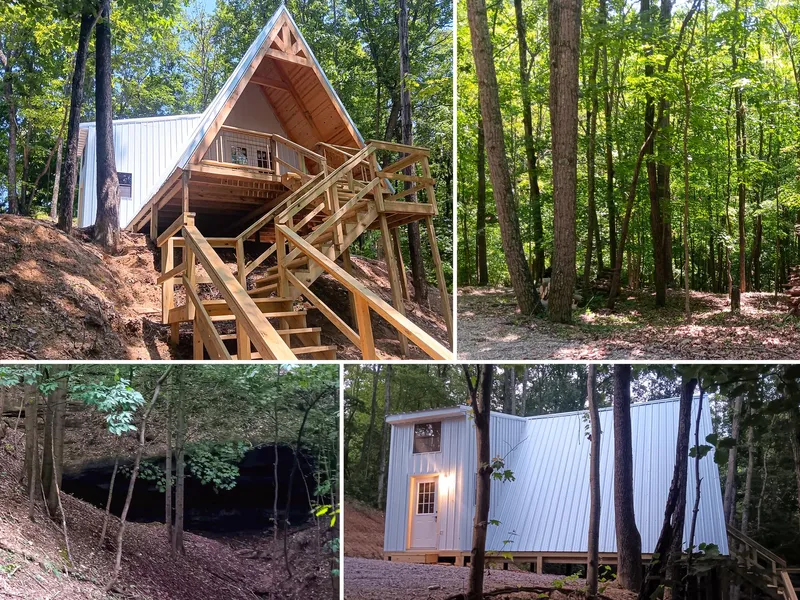 New Solar Powered A-Frame Cabin w/ Beautiful Large Cave on 11.7 Wooded Acres
