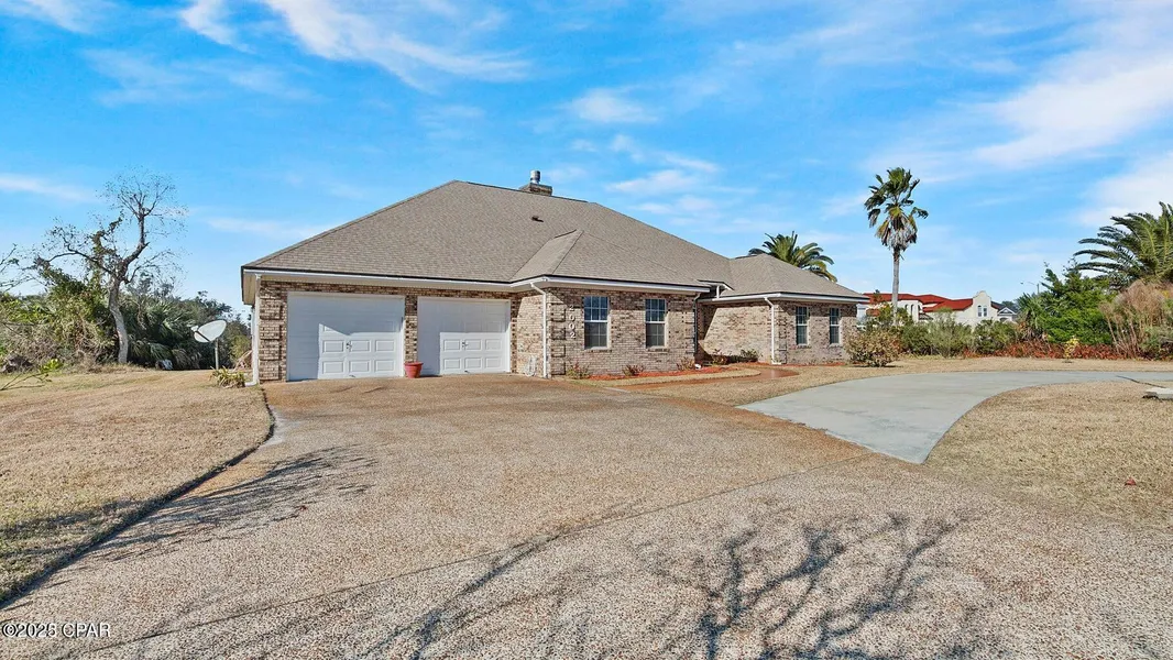 PANAMA COUNTRY CLUB, WATERFRONT 3/2.5. Designed with lots of room for entertaining, this Country Club home features a large Family Room with wet bar, refrigerator, and ice maker; a Living Room with fireplace and built-in cabinetry and shelving; plenty of natural light and a formal Dining Room. A large deck overlooks a peaceful lagoon teeming with wildlife. The private Master Bedroom Suite has French doors open to the rear deck, his and hers walk-in closets, twin vanities, whirlpool garden tub, leaded glass window, and a separate shower. Double door 2 car garage, professionally landscaped yard with sprinkler system and home security system.