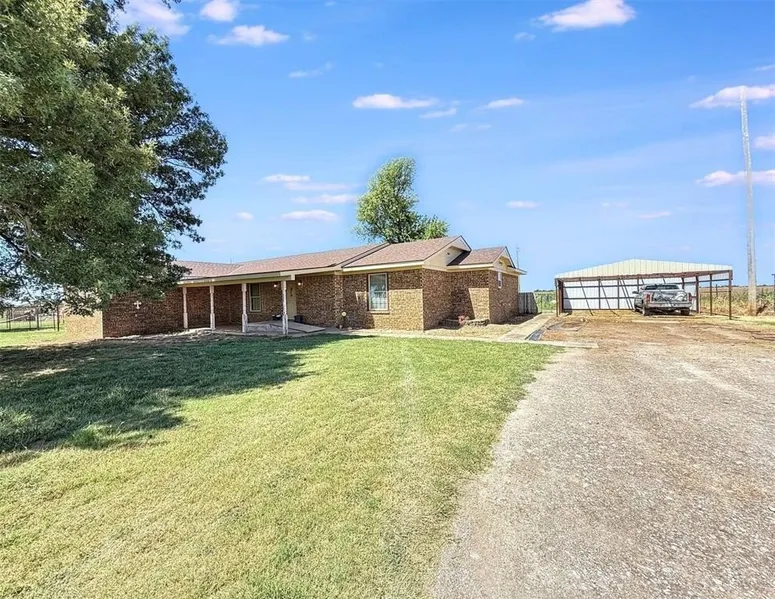 This beautifully maintained 3 bed, 2.5 bath home offers 2,335 sq ft of stylish, comfortable living. Enjoy a fully renovated kitchen, updated bathrooms, new flooring, a geothermal HVAC system (2021), and a new roof (2021). Sitting on a 43,538 sq ft lot, the property includes a brand-new carport (August 2025), a large shop with electricity and covered RV parking, three small barns, and three horse corrals—perfect for storage, hobbies, or livestock. New appliances and a built-in gun safe stay with the home, along with a 20-person storm shelter for added peace of mind.