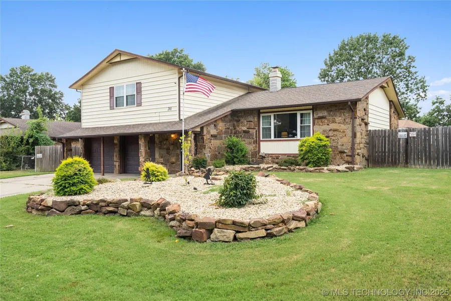 Discover a one-of-a-kind home in a prime Muskogee location, offering 3 bedrooms, 2.5 baths, and a lifestyle full of character and comfort. Cozy up in your private theater room complete with reclining seats, a 65" TV, surround sound, and ambient lighting all included. The spacious master suite features double walk-in closets with stylish barn doors and a beautifully appointed master bath. Let your creativity flow in the unique art room, complete with built-in shelving, a suspended catwalk, and its own TV. Enjoy meals in the formal dining room or gather around the kitchen bar, where the range includes both a standard and convection oven. A pot rack adds charm and function, and the wood-burning fireplace in the living room brings warmth and ambiance. Step outside to a beautifully landscaped backyard with lighting, a privacy fence, and thoughtful drainage. Entertain under the pergola with a gas firepit or cook out in the gazebo equipped with electric and water. For hobbyists or makers, the workshop is a dream featuring electric, air, and a hoist carriage with overhead storage. Priced at $249,990 to reflect room for updates, this home offers incredible value, space, and personality. Come see what makes 201 Elton Dr truly unforgettable.