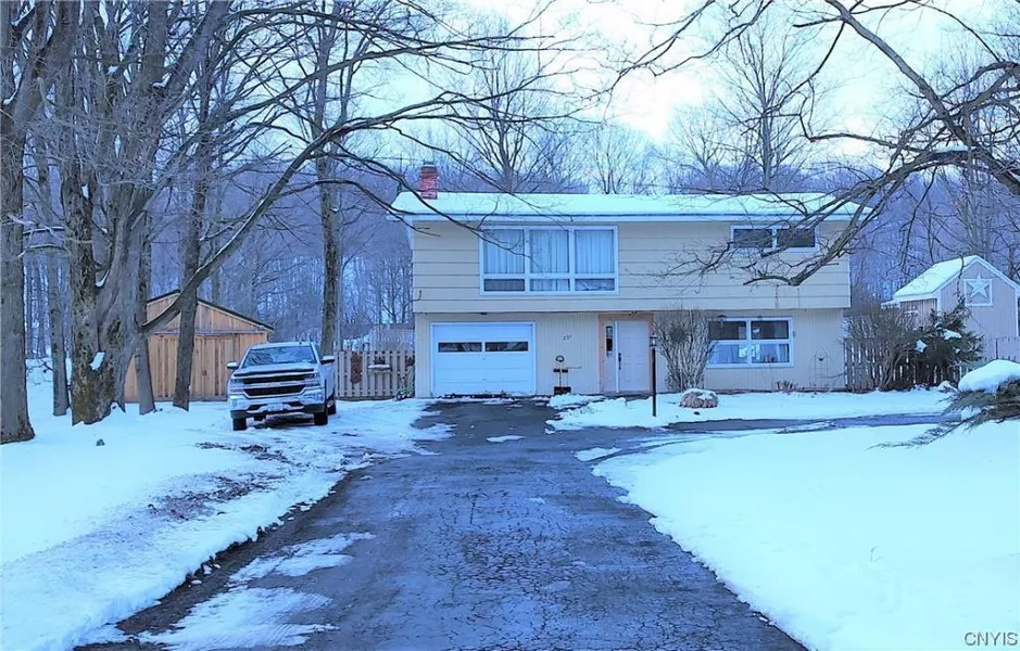 This spacious open kitchen and dining room home also offers a peaceful serenity with its partially fenced garden yard with pond and waterfall. Kitchen has been renovated with granite countertops, and an island that allows seating on one side. Radiant heated floors throughout the first level. There are 3 bedrooms upstairs with updated full bathroom. Attached to the largest bedroom is a walk-in closet and an open room that has been cleared to become a large bathroom for the next owner to build; beige/tan tiles are available to be left for the next owner if they want. The updated half-bath and laundry are located in the room between living room and kitchen. There is a small shed to the right that is attached to the fence facing into the garden and a larger unattached shed found to the left of the home. Property has a larger lot for the area with 1.25 acres. Hot Tub and Kitchen appliances are Sold As Is. Laundry Washer & Dryer do not convey with purchase.
