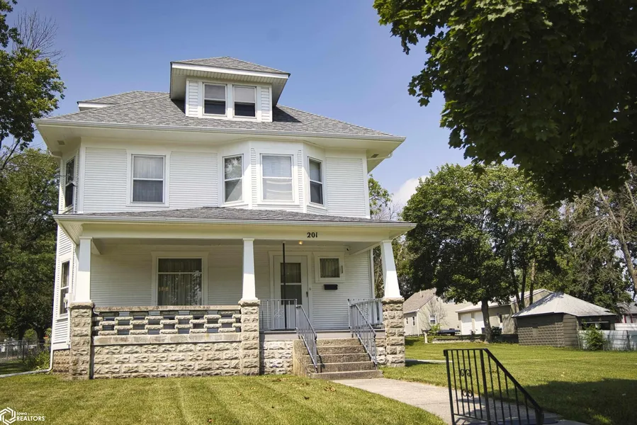 Spacious 4 Bedroom Home with Unique Features! ****Lots of new updates this fall including new roof, new gutters and down spouts, new central air unit and freshly painted. **** Discover this well-maintained, charming 2-story home offering 4 spacious bedrooms and 1 bathroom. The property boasts original woodwork throughout, adding character and warmth. Additionally, it includes a walk-up attic, perfect for additional storage or potential expansion. The basement is perfect for storage, work shop, or potentially make into a rec room. Situated on very large corner lot, it features two stall garage for ample parking and storage. Enjoy the serene views overlooking school fields, providing an open feel. This home combines comfort and convenience, making it a perfect choice for families.
