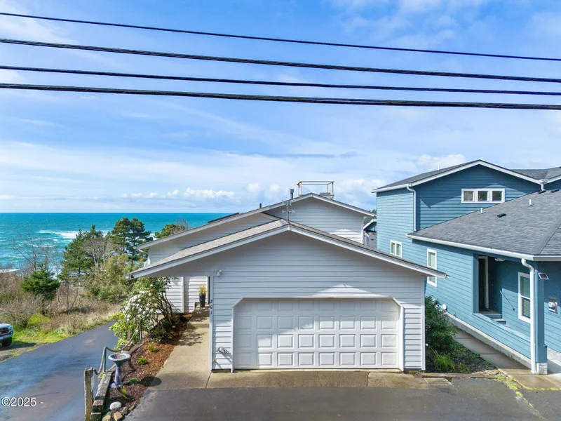 LOCATION, VIEW, COMMERCIAL C-1 ZONING! This stunning, ocean view home checks all the boxes. Miles of dramatic white water views, warm wood flooring, large windows and vaulted ceilings, create beautiful lighting anytime of the day. Open floor plan, leading into upgraded kitchen, boasting oversized functional wood slab island and stainless steel appliances. Three bedrooms, which include primary with soaking tub, fireplace and walk-in closet. Tucked away family room, provides a cozy and private space for family and friends. Private quarters on lower level with bath/shower, one bedroom, office/den and direct access to attached RV/Boat garage (Approx 15'x40' and 14'height). Quaint coastal town of Depoe Bay has restaurants, shopping and whale watching all within walking distance.