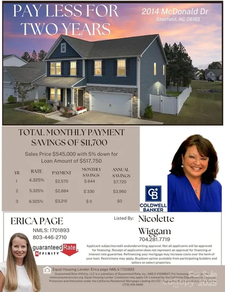 SELLER OFFERING $11,700 PRICE REDUCTION TO BUY DOWN RATE WITH GUARANTEED RATE AFFINITY MORTGAGE. 4.5% APR FOR THE FIRST YEAR. SELLER WILL OFFER $10,000 WITH ACCEPTABLE OFFER TO USE YOUR OWN LENDER-OR PAYING CASH. PRICED AT $175 DOLLARS PER SQUARE FOOT!!!!!!! WHERE IS SANFIELD???? DRIVE TIMES TO WORK 45 MINUETS TO UPTOWN CHARLOTTE, 45 MINUETS TO HUNTERSVILLE, 30 MINUETS TO MATTHEWS, 20 MINUETS TO MINT HILL, 20 MINUETS TO CONCORD, 10 MINUETS TO LOCUS HIDDEN GEM IN A GREAT LOCATION, READY TO CALL HOME! Why wait and build when you can be home by the Holidays! From the moment you step inside, this truly custom-built home welcomes you with thoughtful design, timeless style, and exceptional functionality. At the heart of the home is a chef's gourmet kitchen featuring an Stainless electric range, vented canopy hood, quartz island with seating. A spacious butler's pantry, complete with Quartz counter tops and Backsplash to match the kitchen . Staggered cabinetry, under-cabinet lighting combine beauty with practicality. Real engineered hardwood flooring flows throughout the main living areas, adding warmth and charm. The expanded layout offers flexible living to suit your lifestyle. An extended foyer leads to a versatile front formal dining room with big windows and natural light. A built-in bench area near the garage entry provides a convenient drop zone for coats, bags, and more. Enjoy seamless access from the garage directly to the kitchen and pantry. Upstairs, ALL four spacious bedrooms provide comfort for all. The Primary suite has Custom designed private bonus room with access only from the Primary closet . This room has no closet, and is currently used as an office and gaming area. This space offers endless possibilities: a home theater, nursery, second office, or quiet retreat. Luxurious upgrades include a 5-foot tiled shower, comfort-height counters, extensive tile work, upgraded electrical and security systems, and much more. Designed for High speed internet, CAT 5 enabled internet, bedrooms have ceiling fan pre wire switches, Surround Sound with Volume control, great for your favorite jam! in 2 rooms Outdoor living is just as impressive. The expanded three-car-wide driveway offers generous parking, and a 6-foot privacy fence encloses the backyard-ideal for play, pets, or a future pool. A well sized rear concrete patio is ready for entertaining-bring the BBQ! Quick access from Kitchen/Great Room The garage is equipped with a utility sink, built-in shelving, and additional storage options. Situated on a premium cul-de-sac lot, this home blends style, space, and smart design to create a truly forever home experience-from morning coffee at the island to cozy evenings in your private bonus room. Turn key property, 2 Inch Faux Wood Vinyl Blinds, 6 ft White Vinyl Privacy Fencing, Ready to Move in Today! Why Build! NEW YEAR, ALMOST NEW HOME, BUILDER WARRANTY, NOW IS THE TIMETO MAKE YOUR MOVE!