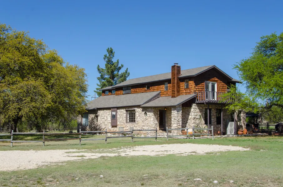 This beautiful home will give you a sense of peace and solitude set among majestic trees Rustic decor reflects the amazing cozy feeling of this unique well maintained home. Massive stone fireplaces and laid hardwood floors as well as sautillo tile complete the comfortable warmth of interior. Lots of room for horses or livestock on additional acreage. Main house also includes an 8x11 study that could be great master closet. Additional workout room 15x11.. You will enjoy entertaining on the amazing stone finished 33x20 outdoor living area or sitting by the beautiful in ground pool. Home provides many entertaining options. Water provided by Tom Green County Fresh Water District #2 . Additional well for filling livestock tanks.