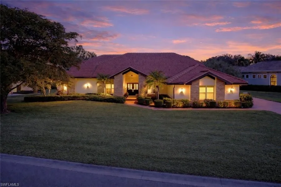Welcome home to this beautifully maintained 3-bedroom + den, 3-bath residence in Wildcat Run, a private, low-density golf and country club community in the heart of Estero. Set on an oversized lot with a stunning wide water view and desirable Eastern exposure, this 2,755 sq. ft. home offers bright, open living with timeless finishes, a thoughtful 2018 interior remodel, and exceptional outdoor space. Remodeled in 2018, the open floorplan features soaring volume ceilings, custom lighting, an elegant vaulted ceiling, and a versatile den or office. The kitchen includes granite countertops, a tile backsplash, breakfast bar, and a charming breakfast nook overlooking the lake. The primary suite offers lanai access, a large walk-in closet, dual vanities with updated counters and sinks, a Jacuzzi tub, and a floor-to-ceiling tiled walk-in shower. Two guest suites provide comfort and privacy for visitors. Outdoor living shines on the expansive lanai designed to capture the best of Florida living, featuring a heated saltwater pool and spa, a panoramic screen framing the wide lake and golf course view, an outdoor bar, and generous covered space for lounging and dining. Electric roll-down shutters, hurricane screens (2018), and Jandy handheld + WiFi pool/spa controls provide added convenience and peace of mind. Recent improvements include updated pantry cabinetry (2019), landscape updates (2021 & 2023), new gutters (2022), HVAC ductwork (2022), and a new laundry room sink (2024). Additional features include a newer roof (2016), newer A/C (2022), a freshly maintained and painted driveway (2025), and a transferable home warranty available for less than $70/month-offering excellent value and peace of mind for new owners. Wildcat Run is known for its rare 1/2-acre homesites, custom-built residences, and lush, mature landscaping. Amenities include an Arnold Palmer-designed 18-hole championship course (with no waitlist for golf memberships), tennis, pickleball, bocce, fitness and wellness facilities, and exceptional dining-all minutes from I-75, RSW Airport, Coconut Point, Hertz Arena, and the Gulf beaches. An exceptional opportunity to enjoy refined living, stunning water and golf views, and a premier country club lifestyle in one of Estero's most desirable communities.