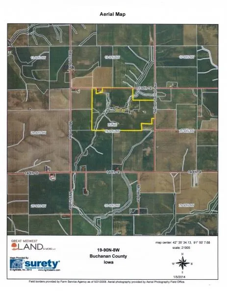 202 acres m/l - 173.33 highly productive tillable acres with a CSR of 82. Annual wind agreement income of $1,050 and a manure easement.