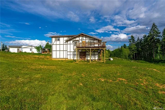 This place is really cool! Upstairs is the living area which has a loft-like feel. 1 bedroom and 2 full baths. Open living room and kitchen with a deck overlooking 5-acres. Downstairs has a bathroom and the possibility to create more living spaces or use as a garage or shop, like it is now! Brand new roof! Check this out!